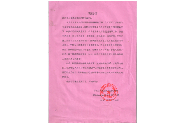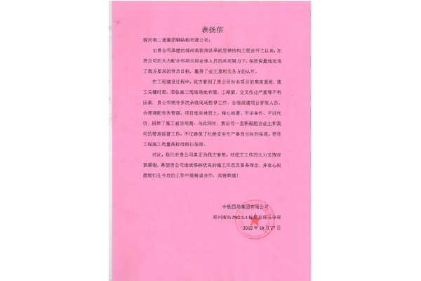 11月5日,由公司承建的鄭州高鐵南站項目鋼結(jié)構(gòu)工程吊裝完成,標志著繼鄭州南站一期工程之后公司再次順利完工該項目二期鋼結(jié)構(gòu)工程。