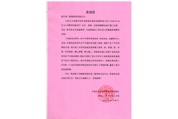 項目部管理人員嚴格按照施工要求,克難攻堅,精心組織,規(guī)范施工。公司鄭州南站項目部全體人員上下齊心,按照業(yè)主要求的時間節(jié)點,圓滿完成各項既定目標,受到總包方表揚。