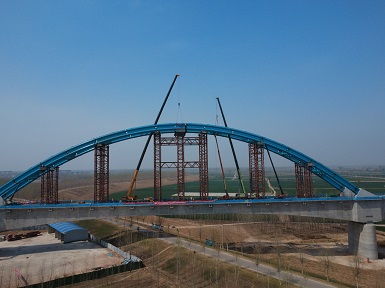 河南二建集團鋼結構有限公司雄商高鐵(梁山段)黃河特大橋鋼拱肋順利合龍